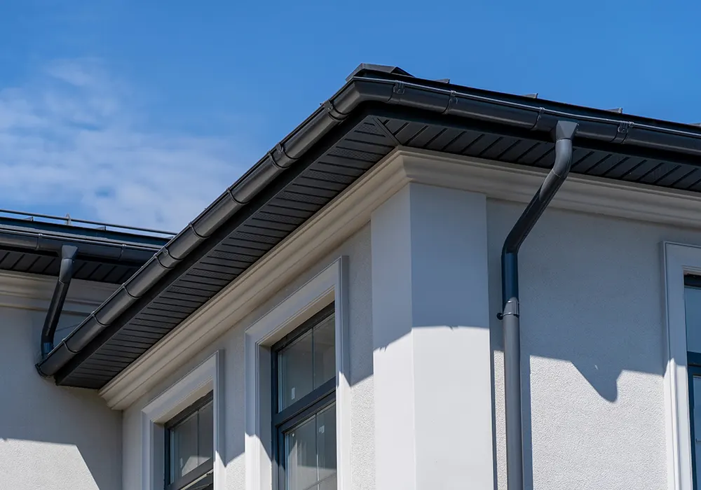 Seamless gutter replacement and leaf-protection systems sized and pitched correctly to protect fascia, siding, and foundation.